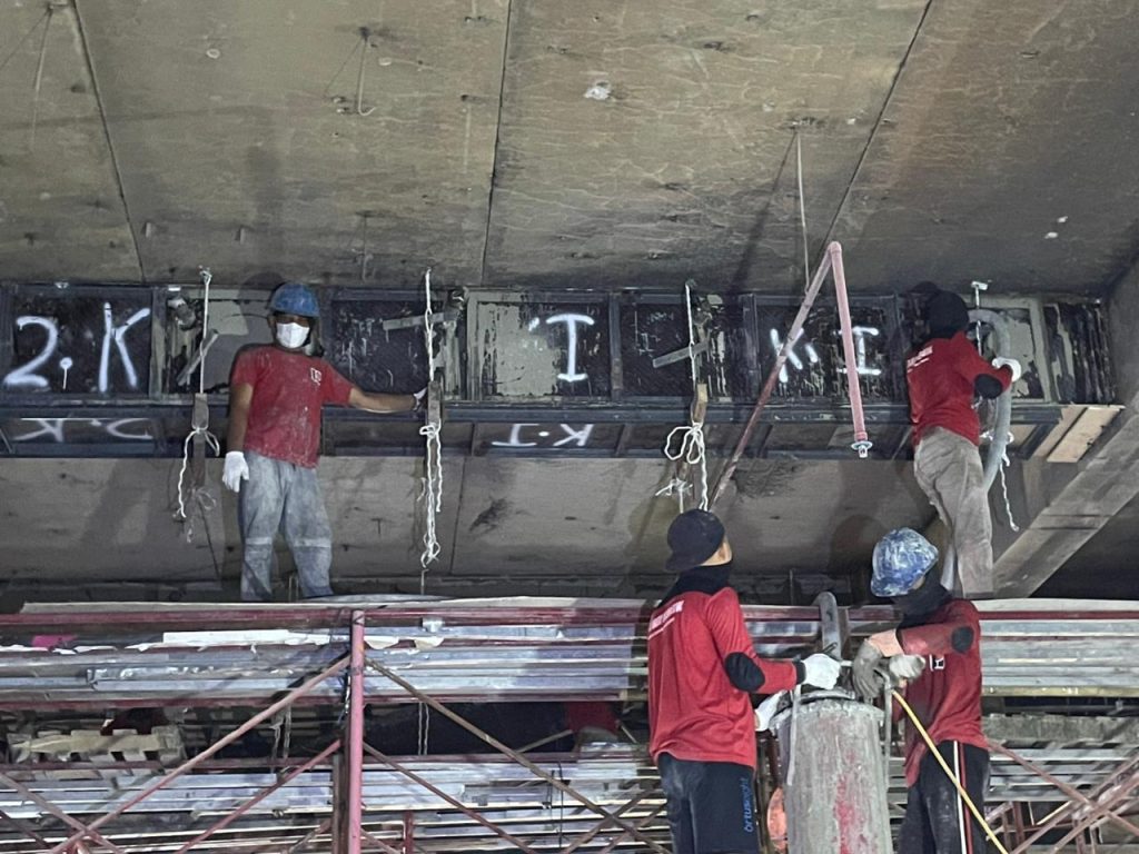 Material grout akan mengikat dan mengisi ruang kosong sehingga meningkatkan integritas beton dan menambah kapasitas beban.